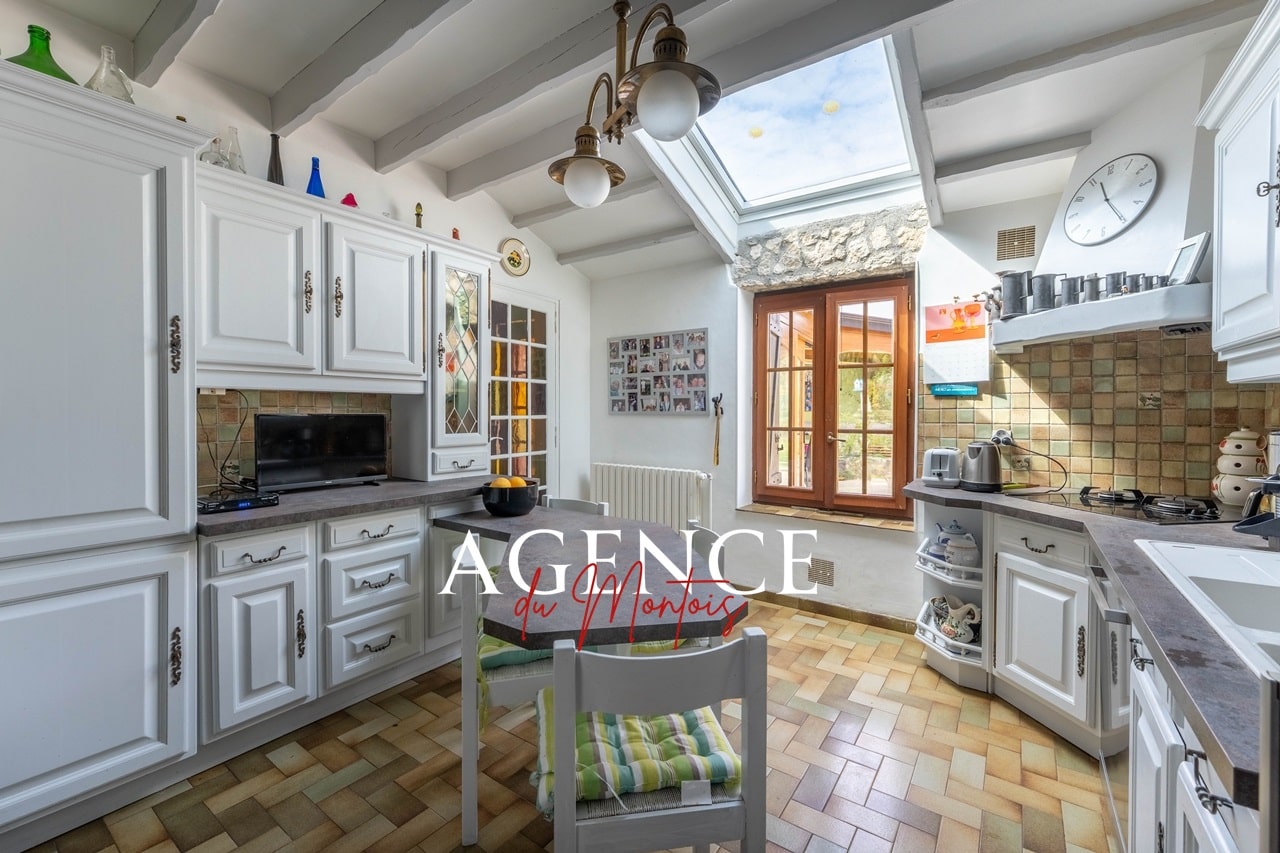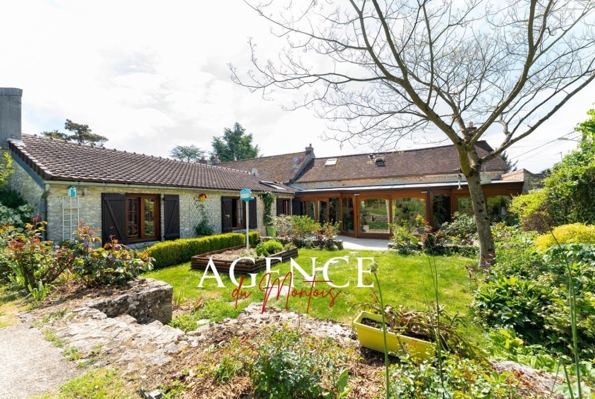 77 - Région DONNEMARIE DONTILLY, à 5 mn de toutes les commodités, dans village pittoresque du Montois vallonné et boisé, sur 2723 m² de beau jardin d'agrément clos avec de nombreux arbres, belle MAISON BRIARDE en très bon état général, avec du caractère :