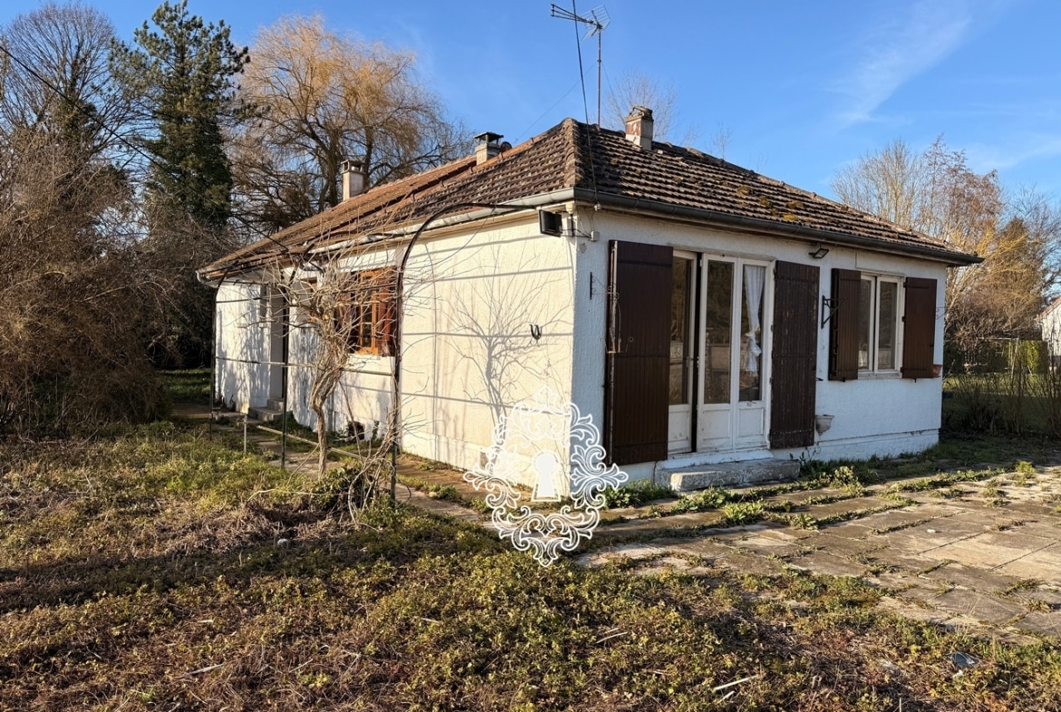 77 - Entre BRAY SUR SEINE et NOGENT SUR SEINE, à 10 mn de toutes les commodités et de la gare, dans village aux alentours champêtres, sur 2664 m² de jardin dont une partie boisée, PAVILLON avec extension, à rénover :