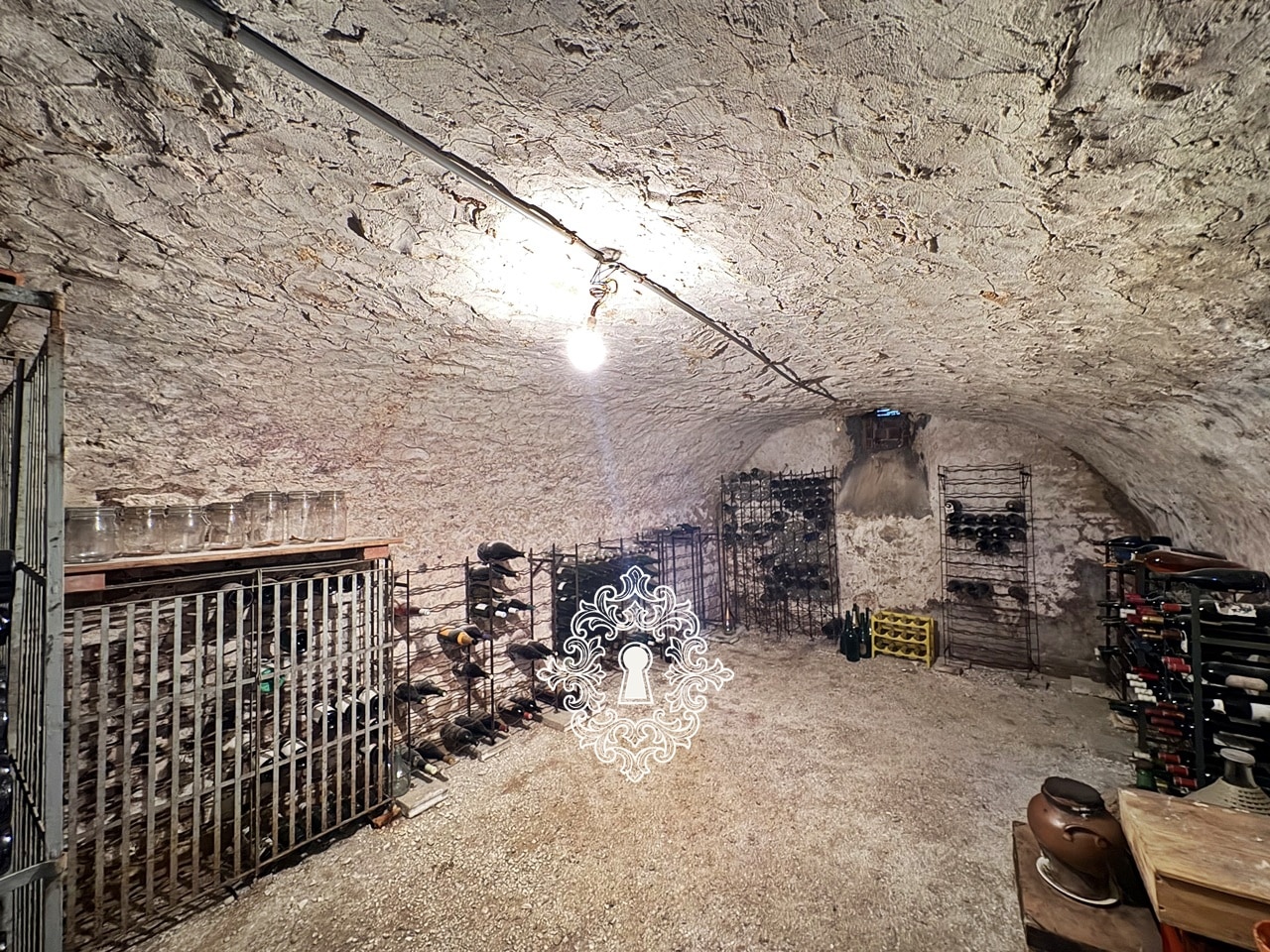 entrée, séjour (cheminée) avec salle à manger, cuisine aménagée et équipée, 2 couloirs, chambre (cheminée), salle de bains, wc, dégagement, cellier,