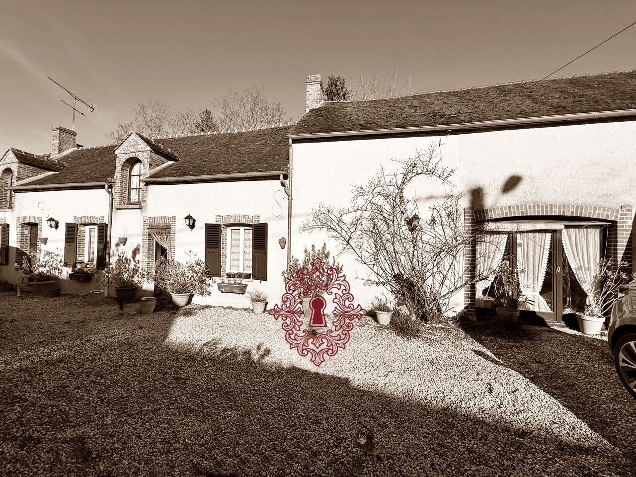 77 - Région LONGUEVILLE, à 5 mn de la gare et de toutes les commodités, dans village de campagne, sur 1254 m² de jardin d'agrément clos de murs et de grillage, FERMETTE DE PAYS spacieuse, en bon état général, à remettre au goût du jour :