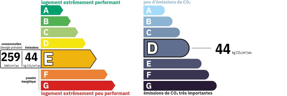 montant estimé des dépenses annuelles d’énergie pour un usage standard entre 1290 € et 1810 €, prix moyen des énergies indexées sur les années 2021, 2022, 2023 (abonnements compris)