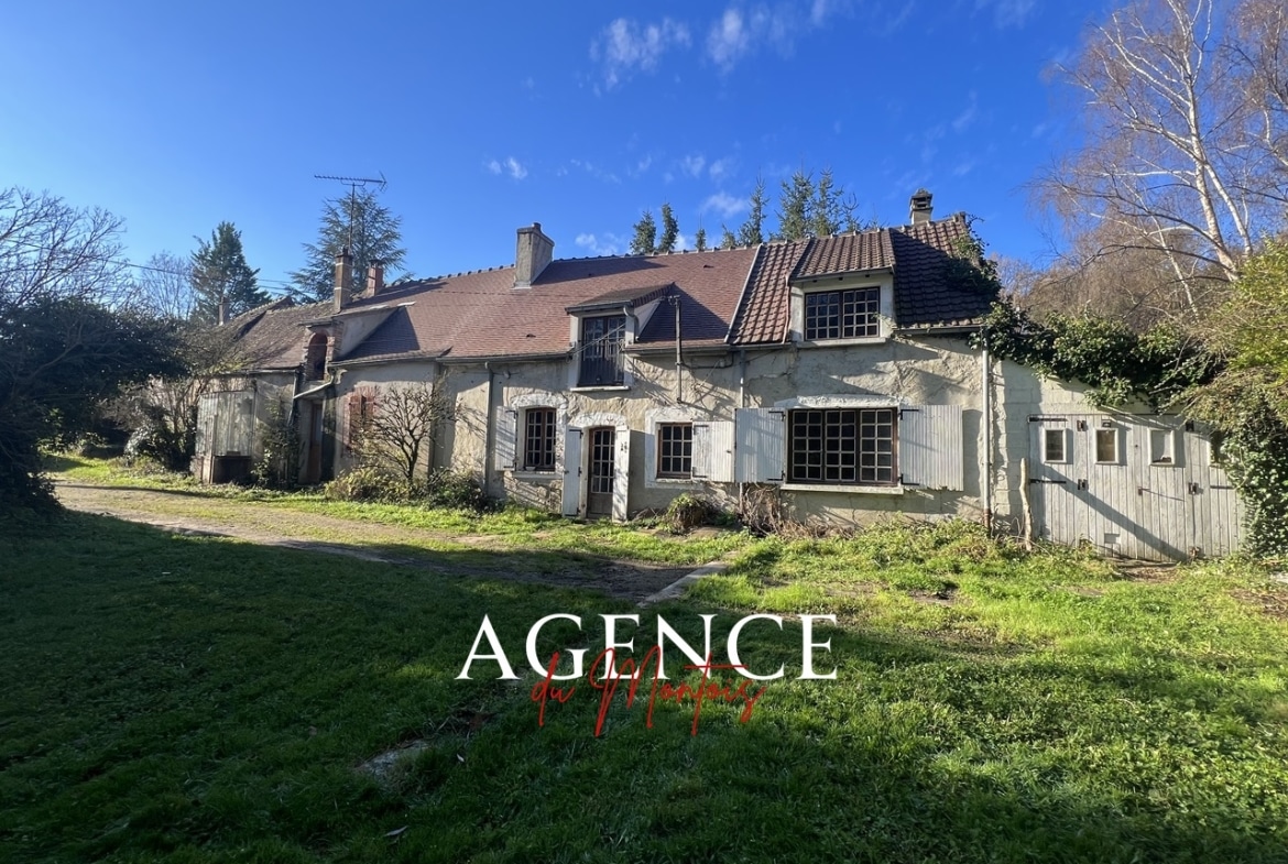77 - Région DONNEMARIE DONTILLY, en sortie de bourg avec toutes les commodités et écoles, sur 5222 m² de jardin d'agrément clos traversé par un cours d'eau et terrain indépendant de 415 m², FERMETTE divisée en 4 logements, à restaurer entièrement :