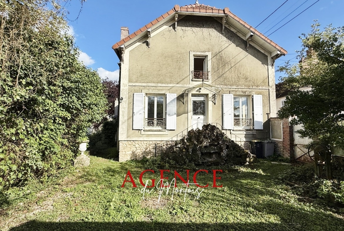 77 - Région DONNEMARIE DONTILLY, près de toutes les commodités et des écoles, sur 298 m² de jardin d'agrément clos séparé par une rivière avec accès par passerelle d'un terrain de 860 m², MAISON DE BOURG lumineuse, à rafraîchir :